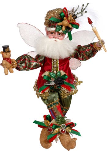 The Mark Roberts Toymaker Fairy is a whimsical collectible dressed in richly detailed artisan attire, celebrating the magic of making toys by hand. He holds a delicate paintbrush, as if adding the finishing touches to a beloved creation, and a tiny bear rests on his hand for an extra dose of charm. With intricate fabrics, expressive features, and storybook personality, this fairy brings a warm, workshop wonder to any holiday or fantasy display.