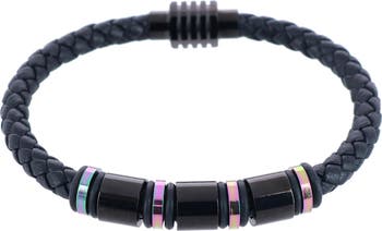 With this Subtle Color Magnetic Band Bracelet, you ll be able to dress up any look and show off your personality while keeping it professional. This bracelet looks great with a suit and tie or a polo and jeans. The versatility of this bracelet makes it a wonderful gift for the hard-to-buy gentleman in your life. This bracelet features black embellishments with subtle colorful rings giving it just enough color to pop off the black braided leather. An ideal gift for Christmas, Chanukah, birthdays, graduations, or just to show you re thinking about him.
