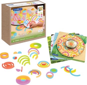 3 years up. Enhance open-ended building play, loose parts play, light play and more with this durable, versatile set of colorful arches. This 90-piece set features vibrant colors and concentric arch pieces that work together beautifully to create organic shapes and patterns. Curved shapes encourage children to explore relationships in balance and organic geometry. Double-sided build cards included to inspire 2D and 3D builds and deeper play experiences. Largest piece measures 3.5"L x 1.8"W x .3"H. Smallest piece measures 1.2"L x .6"W x .3"H.