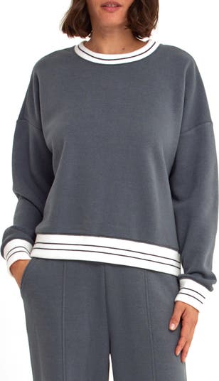 Dropped shoulders further the relaxed fit of this sweatshirt with varsity-inspired ribbed trim that highlights the cozy triblend fleece.
