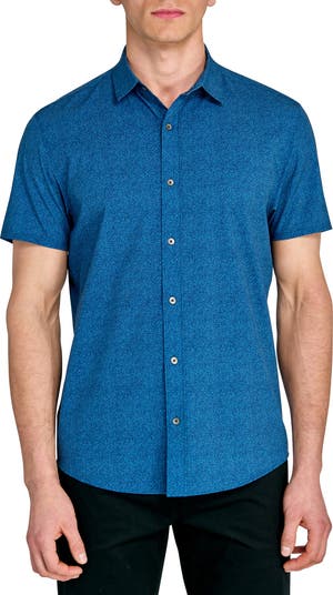 Stretchy, sweat-wicking fabric made in part with recycled fibers keeps you moving comfortably day and night in a travel-ready shirt that dries quickly and resists odors to help you feel fresh. Traditional tailoring pairs with a shorter, leave-untucked hem to bring your elevated looks a finish that s both smart and relaxed.