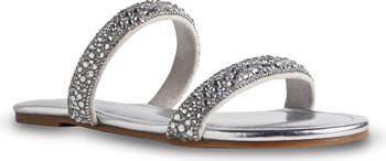 Slip into the sparkly allure and comfort of this slide sandal topped with a duo of rhinestone-embellished straps and set on a cushioned footbed.