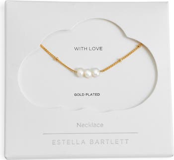 A trio of luminous faux pearls center this delicate chain necklace accented with spaced goldtone beads for subtle shine.
