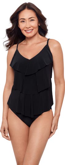 Aqua Green is a solution-oriented swimwear collection of classic silhouettes focused on comfort, coverage, and versatility. This collection is designed to support and flatter all women. Flaunt your figure and showcase your shape in the Richard Triple Tiered Tankini top. The flattering V-neck style features comfortable adjustable straps to customize the fit to your frame, a triple tiered silhouette to contours curves, and full coverage sewn-in cups.