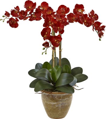 Looking for the perfect orchid arrangement? The 27 in triple stem Phalaenopsis is a classic orchid to be enjoyed by all. Each silk plant comes with three beautiful Phalaenopsis stems each with multiple blooms and buds. Finished with a gorgeous glazed ceramic vase designed to coordinate with any décor, this beauty will bring color and warmth into your home.