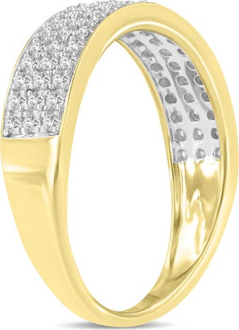 Introducing our elegant Unisex 10K Yellow Gold band ring with 3 rows of brilliant diamonds weighing 0.32 carats available in sizes 6 to 9. With a focus on timeless design this exquisite ring can be both a wedding band or the perfect statement accessory for an exciting evening.