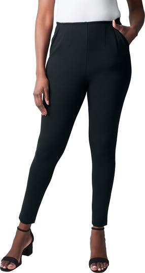 - Shaping and support meets exceptional comfort in this chic, smoothing legging. Four-way stretch keeps this legging feeling polished and flattering all day. Pair them with a mega tunic for a perfect outfit. Slim silhouette Inside waistband for tummy control Four slimming darts at center frontShaping seam yoke panelTwo back-slimming seams Side pockets28&rdquo inseam Rayon/nylon/spandex