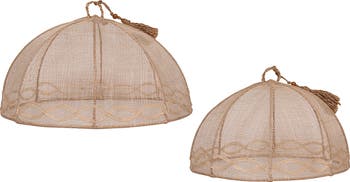 Ensure there are no univited guests at the picnic with this set of pretty and practical food covers. The large dome is abundantly sized for platters and serving pieces and the small dome is perfect for individual place settings and small plates.