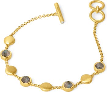 Light-reflecting semiprecious stones and golden stations alternate for spectacular luster on this handcrafted toggle bracelet plated in signature brushed 22-karat gold.