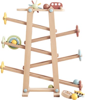 Help build your child s curiosity and sensory development with this innovative toy featuring colorful ramps and rolling toys. This design enhances your child s creativity as they watch balls, cars and roly-polys tumble down different tracks.