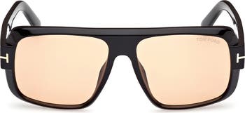 A retro-cool navigator silhouette adds instant charm to stylish sunglasses featuring T-bar logos at the temples for signature flair.