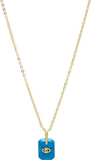 Light up your jewelry box with the Turquoise Evil Eye Dog Tag Necklace by Adina Eden, a radiant Necklace that speaks for itself. With thoughtful shape and vibrant hues, this cute necklace for women is styled in Turquoise. From solo errands to group dinners, this detail adds subtle structure and polish without taking over your look. Stack this gold plated necklace with selections from the Choker Necklaces collection to keep things polished, modern, and fun. Designed to move with you, no matter your look or mood.