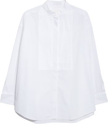 The sister-led design duo reimagines the classic tuxedo shirt with this oversized version updated with a clean-lined band collar, while maintaining the pintucked bib and elegant French cuffs of the traditional originals. It s cut from smooth, crisp cotton poplin sourced from Thomas Mason—a centuries-old mill in Italy’s Lombardy region.