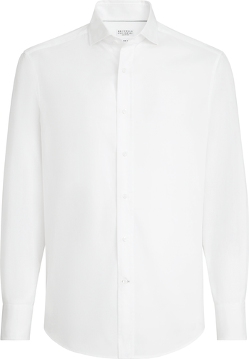 - Placket closure with mother of pearl buttonsSpread collarCuffs have two mother of pearl buttonsSlim fit