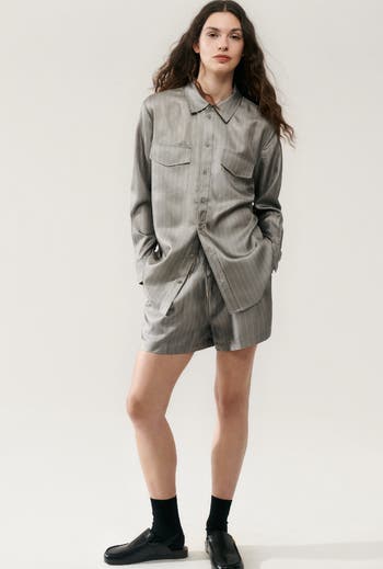 TWILL SLOUCH SHORTS MOON PINSTRIPE