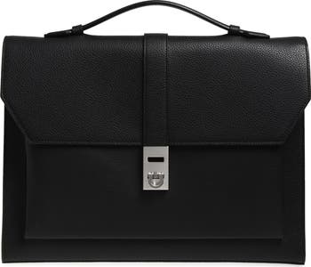Polished Gancio hardware at the flap brings understated branding to this boxy messenger bag crafted in a structured silhouette from richly grained calfskin leather.