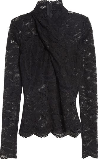 A gorgeous garden of romantic lace conceals and reveals to alluring effect across this artfully draped top, capturing the interplay between protection and exposure—a continued thread in Julien Dossena s designs.