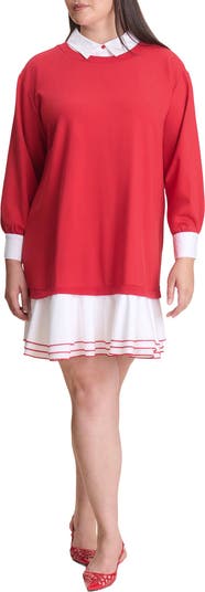 A ponte-and-poplin mini that cleverly layers a knit bodice over a shirting hem.