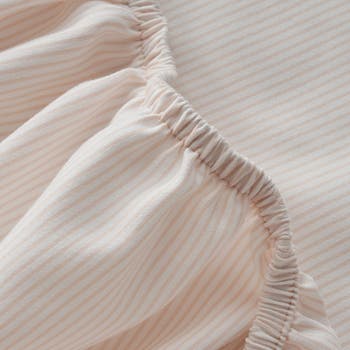Classic ticking stripes are cast in a faded hue hinting at the softness of this sheet set that makes bedtime even more appealing.
