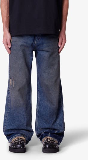 Nicked edges and grungy fading further the just-don t-care attitude of jeans that are cut from nonstretch denim and sized to slouch like you ve lived in them forever.