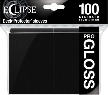 ECLIPSE: STANDARD DECK PROTECTOR SLEEVES - JET BLACK - GLOSS 100CT - See foiled and holographic cards in a new light with Ultra PRO s Eclipse Gloss sleeves. Ultra PRO s exclusive ChromaFusion technology ensures a fully opaque back. With superior durability balanced with an excellent shuffle-feel, these Deck Protectors sleeves are ideal for tournament use in games such as Pokémon and Magic: The Gathering! OVERVIEW: 100 Deck Protector Sleeves. Polypropylene. High-clarity gloss front is perfect for your shiniest collectible cards! Sized to fit Standard Size gaming cards. Archival-safe, polypropylene materials with unique formulations provide a smooth, professional shuffle. Inner layer makes the colored sleeve back completely opaque. PRO-gloss Deck Protector sleeves in a 100-count pack. ULTRA PRO - ECLIPSE LINE: Here at Ultra PRO, we are always looking for ways to innovate and improve our products, and we hope these improvements are as exciting for you as they are for us. The Eclipse Line has an Array of items and Accessories for all your gaming and collecting needs! Eclipse Line by Ultra PRO Brings the Best of Both World from Style to Durability. Battle Against Friends and enemies in style, travel with your battle cards, Gaming cards, or collectible cards safely with the Eclipse line. UP your Game with Ultra PRO!