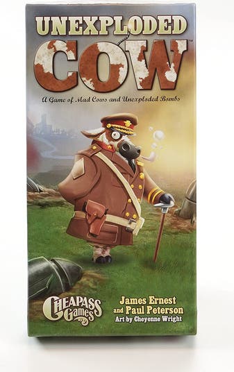 Cheapass Games makes a splash with this deluxe reprint of the classic card game Unexploded Cow. Players take the role of savvy entrepreneurs who have found two problems with a common solution: mad cows in England, and unexploded bombs in France. Game play is simple, fast, and funny. This evergreen Cheapass Game returns after many years out of print, with all-new artwork, and updated rules. Round up your herd, march them through France, and make a buck blowing them up!