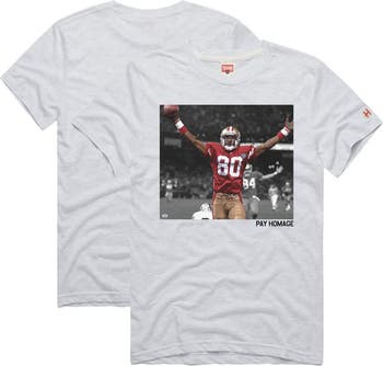 Pay tribute to a San Francisco 49ers legend with this Jerry Rice Pay Homage Tri-Blend T-Shirt from Homage. Crafted from a tri-blend fabric, this tee offers a soft feel and added durability for long-lasting comfort. The player graphic printed across the chest pays tribute to the legendary Jerry Rice, making this tee a must-have for any die-hard 49ers fan.