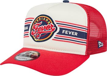 Show your love for the Indiana Fever with this Banner Foam Front 9FIFTY A-Frame Adjustable Trucker Hat from New Era.The 9FIFTY A-Frame design combines a high-profile, pinched crown with breathable mesh panels, ensuring both style and comfort. The bold, embroidered team logo with raised details and printed wordmark proudly display your Indiana Fever fandom.