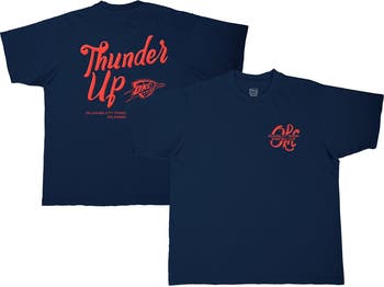 Represent the Oklahoma City Thunder in style with this Thunder Up Urban T-Shirt from Stadium Essentials. Made from heavyweight cotton, this tee provides long-lasting wear and a soft feel, so you can stay comfortable all season long. With stylish Oklahoma City Thunder graphics on the front and back, you ll be able to add team spirit to any outfit and showcase your fandom wherever you go.