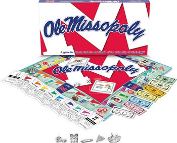 The OLE MISSOPOLY board game is an ideal choice for University of Mississippi alumni, students, and future graduates. The tokens feature an alarm clock, pencil, gym shoe, bicycle, and graduation cap. The board spaces are named after iconic university landmarks such as the Grove, Holman Hall, Fulton Chapel, Daily Mississippian, Ole Miss Union, Four Corners, Dixie Week, and Rebel Drive. Players can opt for traditional gameplay or a quicker one-hour version.