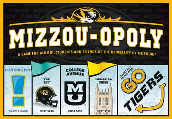 MIZZOU-OPOLY - Go Mizzou! There’s Nothing Like The Mizzou Experience! We Visited The University Of Missouri In Columbia And Asked Students And Alumni, “What Makes This Place So Special?” We Checked Out The Columns, Walked The Walk Across Francis Quad, And Even Had A Photo Taken With Truman! The Results Of All This Intense Research? A game so full we could hardly get the lid on! Here’s A Quick Idea Of How To Play! Choose Your Token, Buy Well Known Mizzou Properties, Collect Years Of Credit And Trade Them In For Diplomas. It Sounds Easy Enough - But Add Academic Probation, Summer School, And Increased Tuition And It Becomes A Little More Difficult And A Lot More Fun. You May Be Going On Spring Break… Or You May Be Out Of The Game For Eating Too Much Pizza! This Is Mizzou…And It’s Your Roll! For 2-6 Players Ages 8 And Up