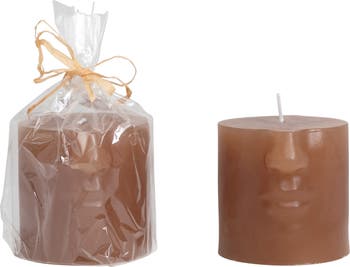 - This intricately carved pillar candle showcases a the striking silhouette of a face