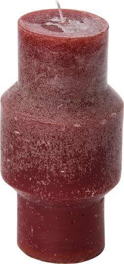 - This intricately carved pillar candle showcases a striking sculpturesque design