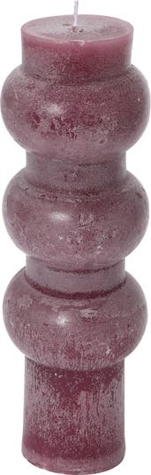- This intricately carved pillar candle showcases a striking sculpturesque design