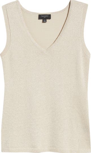 Show off your shoulders in this softly ribbed sweater-tank knit with a timeless V-neckline.