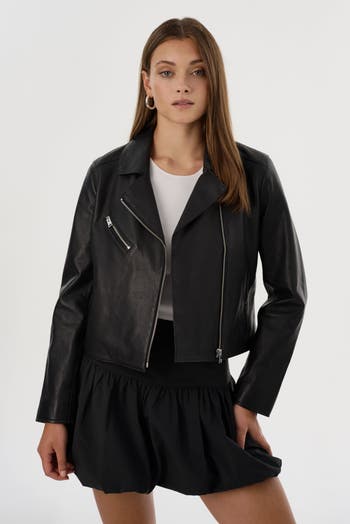 The VALERIA Leather Biker Jacket reimagines a timeless silhouette with a relaxed fit and asymmetric zip closure. Details like adjustable snap tabs and signature zip pockets add a subtle edge, making it ideal for those seeking a refined yet bold addition to their wardrobe.