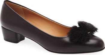 The label s signature Vara bow—updated in plush shearling and centered with logo-etched hardware—brings a signature touch to this leather pump constructed using Ferragamo s signature (and revolutionary) lasts.