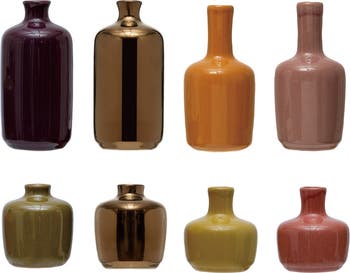 Bring some vibrancy and charm to the home with these multicolor stoneware vases. Each vase features a distinctive reactive glaze that creates a striking contrast with the natural clay base. The glaze also gives each vase a unique color variation and finish, making them one-of-a-kind pieces. These vases are not only decorative, but also functional. They can be used for fresh or artificial flowers. Also fill them with sand, pebbles, or other materials to create various arrangements. These vases are perfect for adding some flair to the modern, bohemian, or eclectic style. Display them as a set or mix and match them with other décor pieces. The vase measures 3 inches in diameter, and 6 inches tall each, making them ideal for tabletops, shelves, mantels, or windowsills. They are made of durable stoneware, which is durable and resistant to cracks and chips. They are easy to clean and maintain, just wipe them with a damp cloth. Add a splash of color and texture to the home with these stunning stoneware vases.