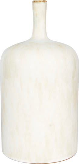 - This stoneware vase is a stunning piece of art that features a reactive glaze in white that provides a touch of texture and shine