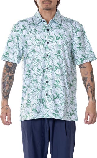 Hibiscus Print Floral Short Sleeve Performance Button-Up Shirt