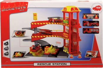 This Dickie Toys Fire Station Play Set is great fun on three levels! The fire station play station has a manual lift and a petrol station. The floors can also be reached using ramps, without the lift. Making sure only authorized cars can enter the SOS department, there is a barrier at the entrance. The toy play set comes complete with 2 die-cast cars and additional accessories included.