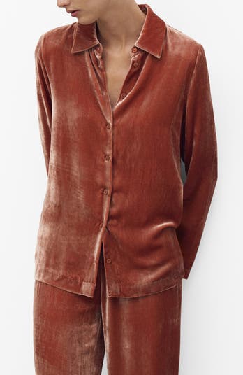Add some opulence to your bedtime routine with this button-up shirt made from silk-kissed velvet.