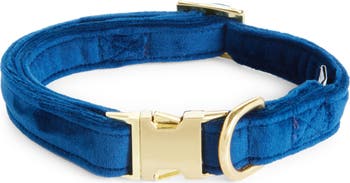 A soft velvet design with glinting hardware defines a plush and comfortable collar that adjusts to perfectly fit your pup.
