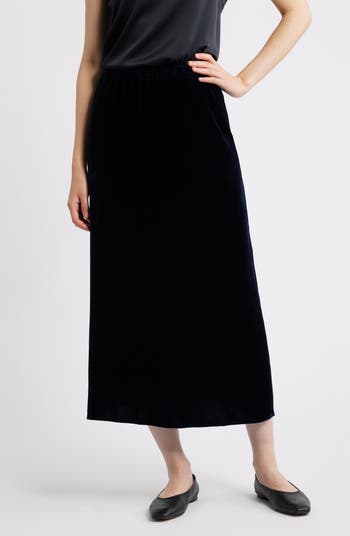 Elevate your everyday style in this silk-kissed velvet skirt designed with in a flared silhouette that completes this irresistible look.