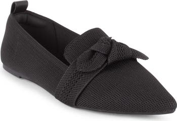 A breathable knit upper creates airy comfort in this pointy-toe flat topped with a knotted bow.