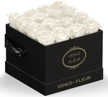 This arrangement features stunning Eternity Roses® set in a hatbox-inspired square box. It is an ideal arrangement for elevating any small space and serves as a perfect gift. An Eternity Rose is a luxury rose that can last more than a year with proper care.