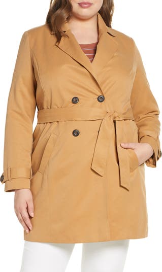 Elevate your chilly-day vibe in this double-breasted jacket styled with a back storm flap and a waist-defining belt.