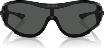 Ultramodern wraparound frames bring bold style to these Italian-made sunglasses fashioned with signature Medusa medallions gleaming at the temples.