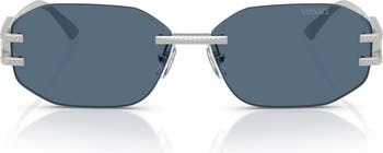 Frameless oval sunglasses are punctuated by signature logos at the start of each temple and fitted with UV-protective lenses.
