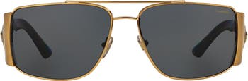 Logo hardware shines at the temples of suave rectangular sunglasses featuring an oversized silhouette and glare-reducing polarized lenses.